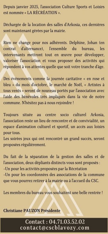 Bienvenue sur le site du Centre Socio-Culturel de BLAVOZY